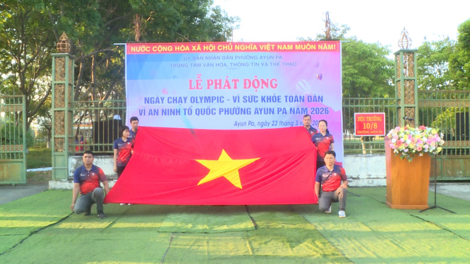 Sáng ngày 22/3/2026, tại Quảng trường trung tâm phường Ayun Pa đã diễn ra Lễ phát động Ngày chạy Olympic vì sức khỏe toàn dân và vì an ninh Tổ quốc năm 2026. Sự kiện thu hút hơn 1.000 người dân, cán bộ và lực lượng vũ trang tham gia, tạo nên bầu không khí rèn luyện thể chất đầy khí thế.
