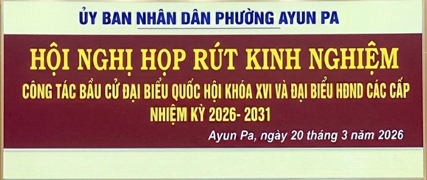 Chiều ngày 20/3, Ủy ban bầu cử phường Ayun Pa đã tổ chức Hội nghị rút kinh nghiệm công tác bầu cử Đại biểu Quốc hội khóa XVI và Đại biểu Hội đồng nhân dân (HĐND) các cấp nhiệm kỳ 2026-2031.